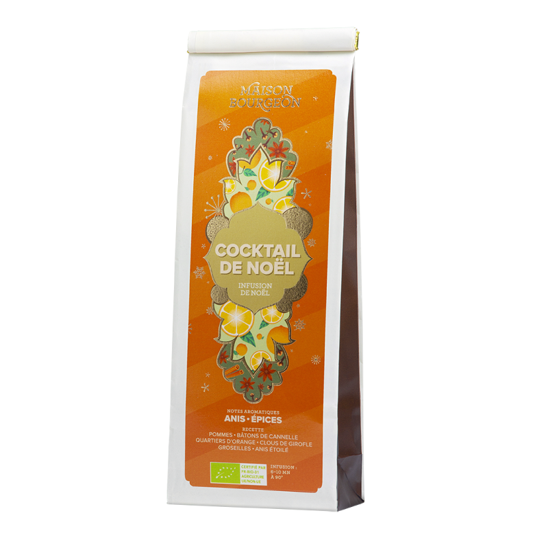 Mélange festif et réconfortant à l’anis, cannelle et écorces d’orange. Sans théine, certifié AB.